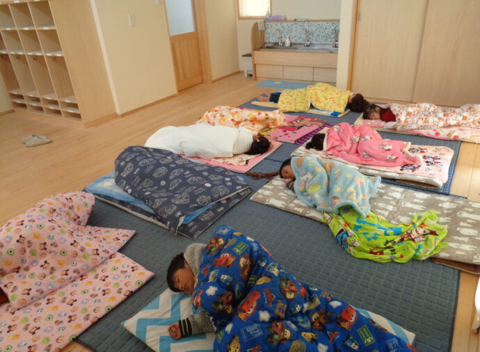 お昼寝からお目覚め/寝起きの悪い子を起こしお布団片付け/